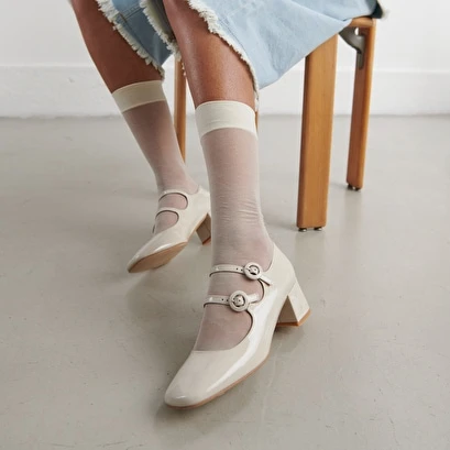Vous aimez les looks vintages ? Alors n’attendez plus et adoptez la DELOU ! Son vernis écru et ses deux brides à boucles se marieront avec toutes vos tenues !