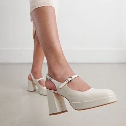 Nos VADOR sont des babies à talons présentant deux brides, une passant sur le dessus du pied et une autre à l’arrière, qui se ferme au niveau de la cheville. Composées toutes les deux de boucles ajustantes, elles permettent un maintien parfait du pied et offrent ainsi un confort optimal pour marcher tout en donnant une allure élancée. Le cuir brillant écru apporte un aspect lumineux et s’accorde parfaitement avec les couleurs de la saison.