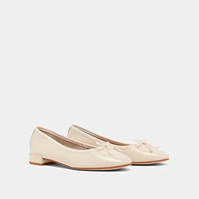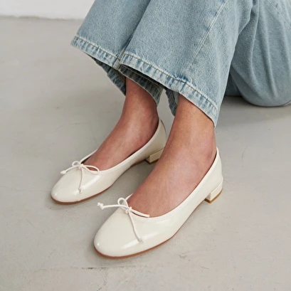 Ballerines à Bouts Ronds En Vernis Plissé écru