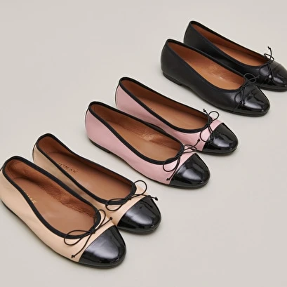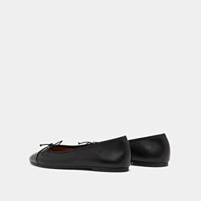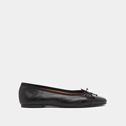Ballerines à Bouts Ronds Et Noeuds En Vernis Cuir Noir