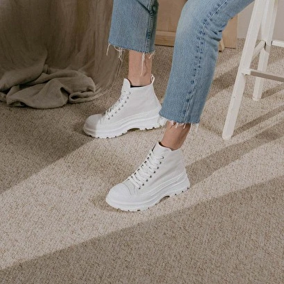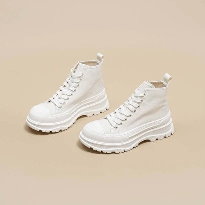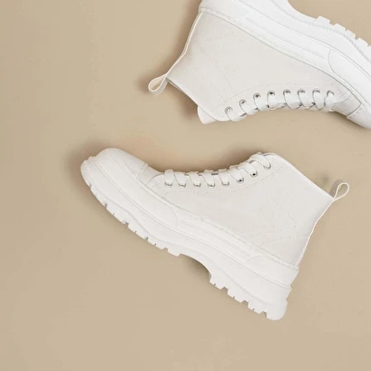 Grande tendance cette année, les semelles épaisses se sont glissés dans la création de nos nouvelles baskets NELLY en textile blanc !