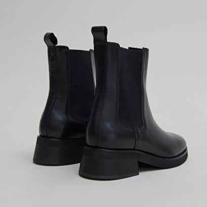 Optez pour la paire de boots PARISSE ! Une paire de caractère malgré ses lignes classiques. Vous craquerez pour son bout rond et son cuir noir. Grâce à son élastique vous serez maintenu et confortable. À porter avec vos jupes, vos robes et vos jeans droits !