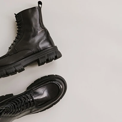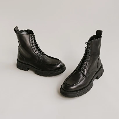 Boots à Lacets Et Semelles épaisses En Cuir Noir