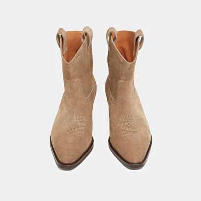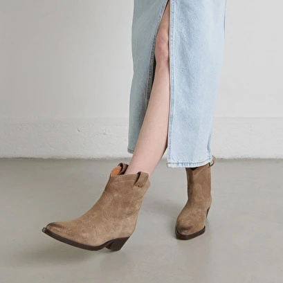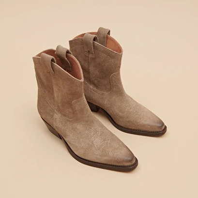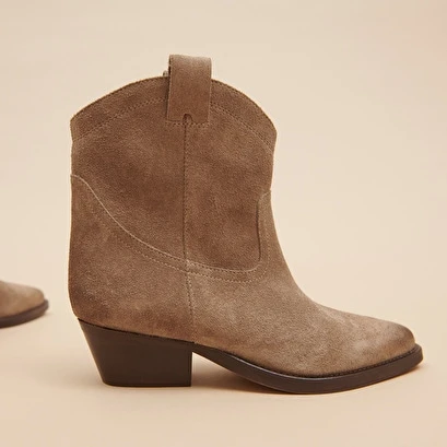 Les DONATE sont des boots à talons biseautés en croute taupe. Elles sont à la fois des boots tendances et décontractées; en effet, les essayer, c’est les adopter. La croute est un matériau qui confère une texture douce et légèrement veloutée, donnant aux bottines un aspect raffiné. De plus, la couleur taupe est un choix polyvalent car elle peut être facilement assortiée à une variété de tenues. Pour finir, des petits élastiques se trouvent sur le haut de la tige pour faciliter l’enfilage.