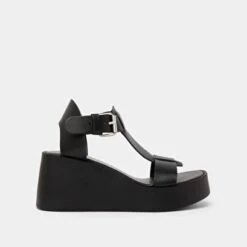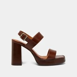 Sandales Compensées à Boucles Ajustables En Cuir Marron Foncé