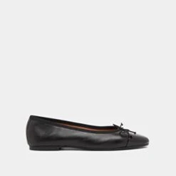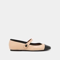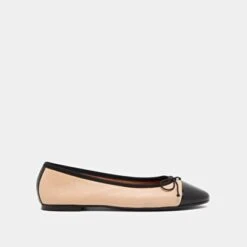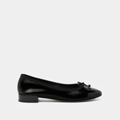 Ballerines à Bouts Ronds Et Noeuds En Vernis Cuir Noir Et Beige