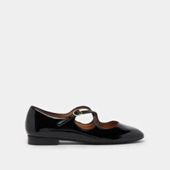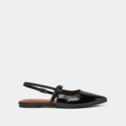 Ballerines à Bouts Pointus Et Lanières En Cuir Brillant Noir
