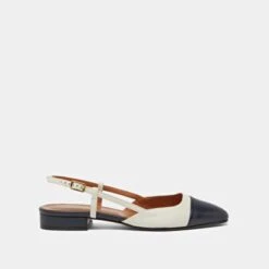 Ballerines Slingback à Bouts Carrés Et Détails Dorés En Cuir Noir