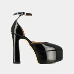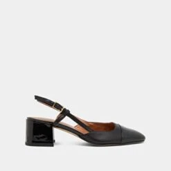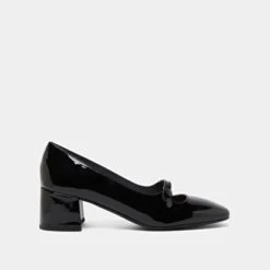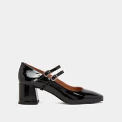 Babies à Talons Moyens Et Brides à Boucles En Vernis Plissé Noir