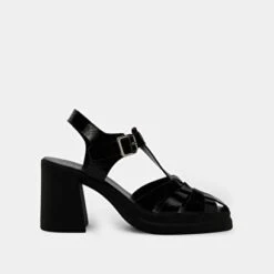 Sandales à Talons Compensés Et Détails Argentés En Cuir Noir