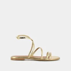 Sandales Plates à Brides Et Lanières En Cuir Métallisé Platine