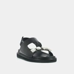 Sandales Plates à Brides Et Lanières En Cuir Et Strass Argent