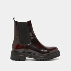 Boots à Semelles Crantées Et élastiques En Cuir Glacé Bordeaux