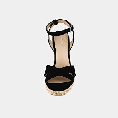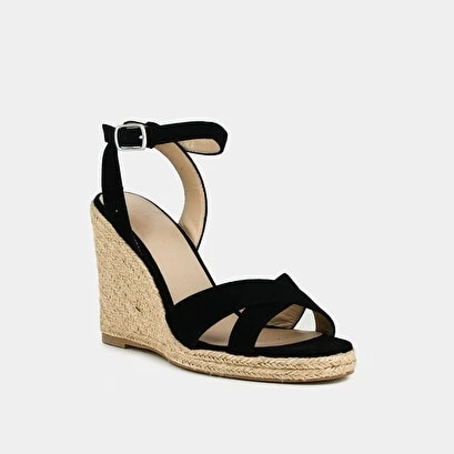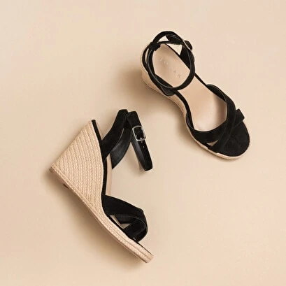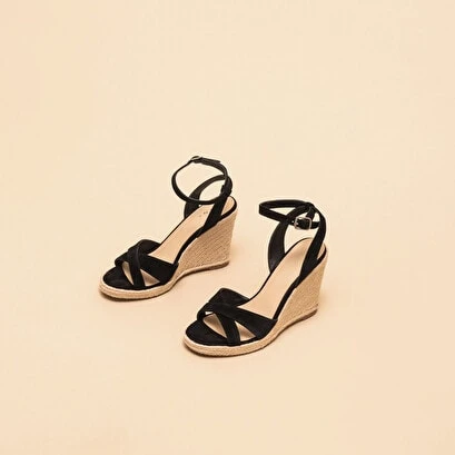 Le talon en corde s’associe joliment au velours noir et la fermeture à bride vient délicatement souligner la ligne de vos jambes pour parfaire toutes vos tenues estivales.
