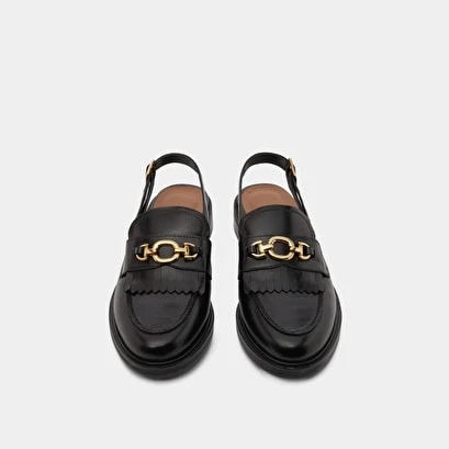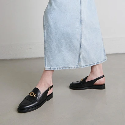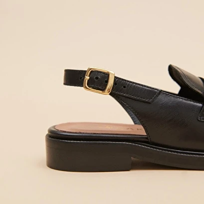 Mocassins qui sauront s’imposer à tous les pieds, les DELPHY font partie des joyaux de cette nouvelle collection. La partie avant est arrondie et offre un confort supplémentaire aux doigts de pieds en évitant les pressions inconfortables. De plus, les bouts arrières ouverts permettent à l’arrière du pied de respirer et de rester au frais, tout en ajoutant une touche de modernité au design intemporel des mocassins. Faites confiance à leurs brides arrières et leurs boucles ajustantes pour obtenir un maintien parfait malgré l’absence d’une tige arrière. A cela s’ajoute la présence de mors dorés qui ornent le dessus des DELPHY, contrastant avec le cuir noir et donnant une touche distinguée à l’ensemble.