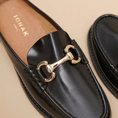 Osez sortir avec nos beaux mocassins OLIVIA ! Son bout ouvert, son mors doré ainsi que son cuir glacé noir vous apporteront une touche glamour et tendance à vos looks de tous les jours.