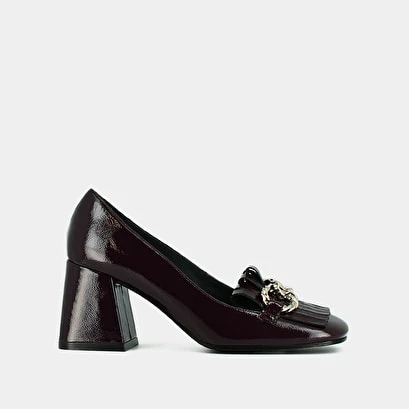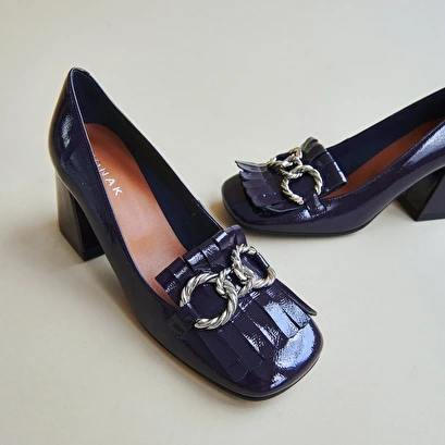 Les DOMITILLE, nos mocassins à talons, sont magnifiquement agrémentés par une patte à franges et des boucles torsadées argentées. Hyper tendances, craquez pour leurs détails et leur violet foncé.