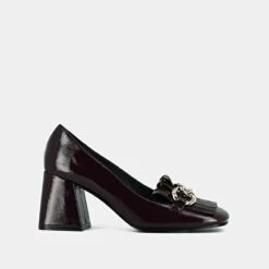 Mocassins à Talons Et Boucles Argentées… En Vernis Plissé Violet