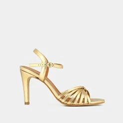 Sandales à Brides Croisées Et Bouts Ouverts En Cuir Métallisé Or