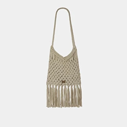 Pour un look toujours plus bohème, potez pour le sac bandoulière tressé façon macramé, à porter sur l’épaule ou croisé.
