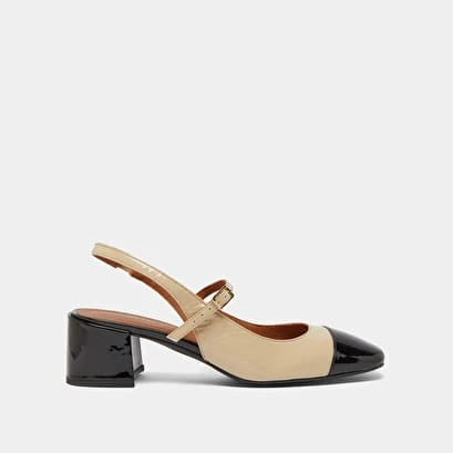La DOUMY est une paire de salomés élégantes en cuir vernis noir et écru. Elle vous accompagnera la journée au bureau et pour toutes vos soirées, jusqu’au bout de la nuit.