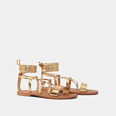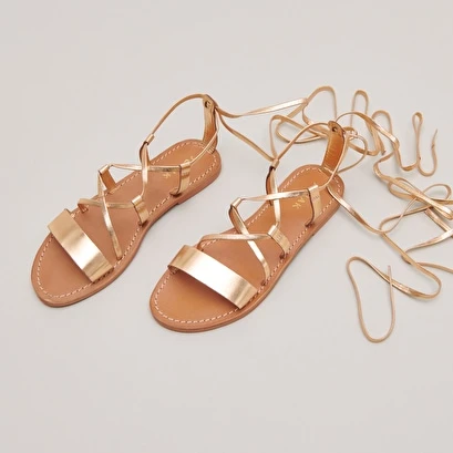 Découvrez nos sandales WHISKY ! Vêtues de leur cuir métallisé or et de liens à nouer à la cheville, elles seront parfaites pour mettre en valeur vos jambes. Elles se porteront facilement en soirée mais également en journée avec une robe ou une jupe.