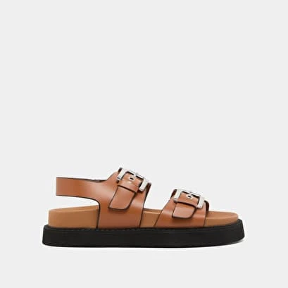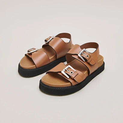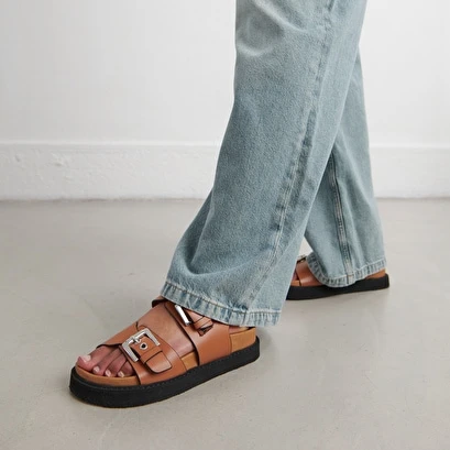 On opte pour un look rock décontracté avec les sandales LAGO. Les larges brides en cuir cognac rehaussées d’une boucle apportent féminité et style à ces mules qui habilleront toutes vos tenues d’été. A porter avec un jean brut ou une longue robe fluide.