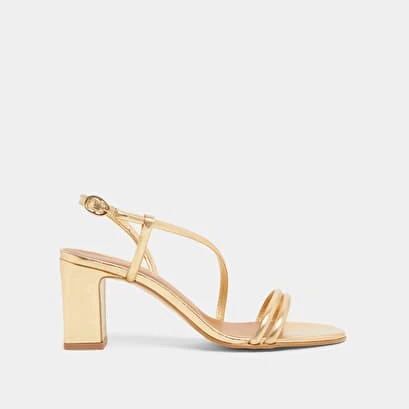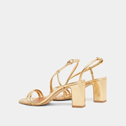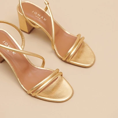 Son cuir métallisé or et son talon épais apporteront ce qu’il vous faut pour habiller vos tenues favorites !